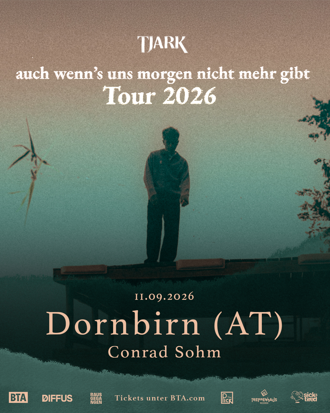 „auch wenn’s uns morgen nicht mehr gibt“: mit diesem rätselhaften Titel kündigt TJARK sein Debütalbum an – und macht damit einen Punkt hinter das erste, aufregende Kapitel seiner jungen Karriere. Hinter dem 21-jährigen Newcomer liegen beachtliche Meilensteine: millionenfach gestreamte Songs, eine erste eigene EP und schon zwei Live-Touren, auf denen er seine berührende Musik zwischen Indie-Pop, Folk und urbanen Sounds in ganz Deutschland auf die Bühne gebracht hat. Nun ist TJARK bereit für die nächste Etappe. Eine, in der er sich frei macht von den Erwartungen anderer, aber auch seinen eigenen. Eine, in der er die Großstadt hinter sich lässt und gegen das beschauliche Dorfleben in seiner alten Heimat eintauscht. Statt sich jeden Abend der Hamburger Kiezkultur hinzugeben, genießt TJARK jetzt wieder die Ruhe und Idylle der Brandenburger Provinz – und hat durch diesen vermeintlichen Schritt zurück zwei nach vorne gemacht. „2024 haben wir super viele Festivals und Support-Shows gespielt. Deshalb habe ich mich Anfang des Jahres dazu entschieden, wieder nach Hause zu ziehen, um mehr Ruhe zu haben und das war ein sehr wichtiger Schritt. Die meisten Songs wurden hier geschrieben und produziert, viele auch mit guten Freunden von mir und diese Umgebung hat einen großen Einfluss auf das Album gehabt“.